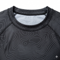 This is a form fitting compression rash guard, not a relaxed top. Since the fit is noted as updated to feel truer to size on marked styles, treat the size chart for this model as the reference. Wash cold, turn inside out, avoid bleach, keep drying heat low, and skip fabric softeners to protect elasticity and the graphic finish.